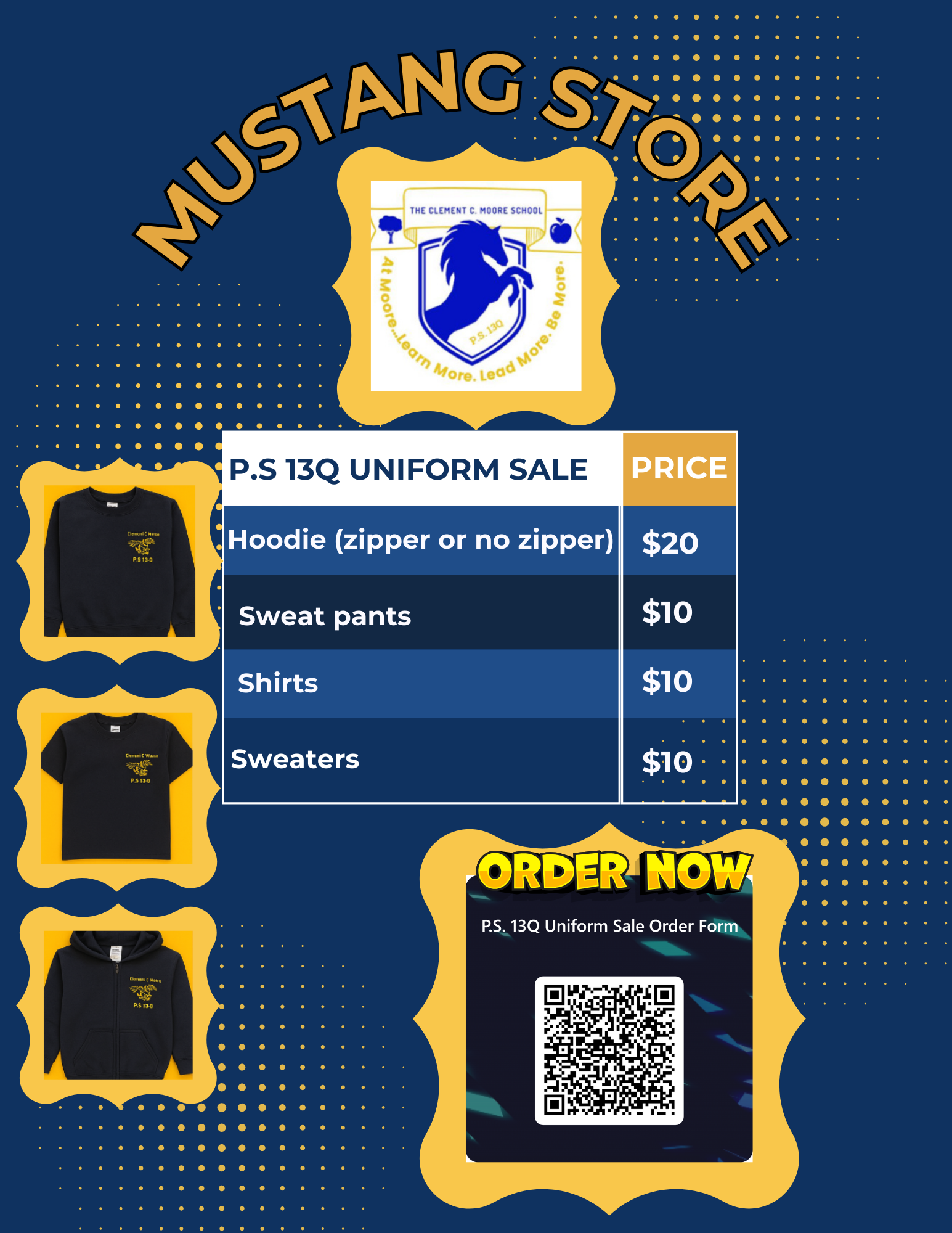 A variety of uniform items and sizes will be available at discounted prices, while supplies last.